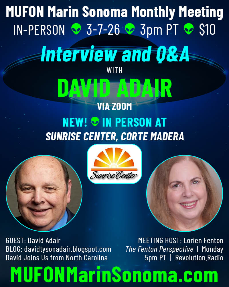 MARCH 7 : In Person Meeting at NEW VENUE: Sunrise Center, Corte Madera, CA - DAVID ADAIR
